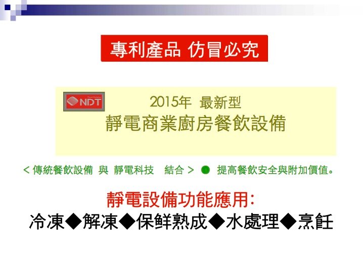 靜電科技對『 食品加工』與 『 餐飲業』的效益