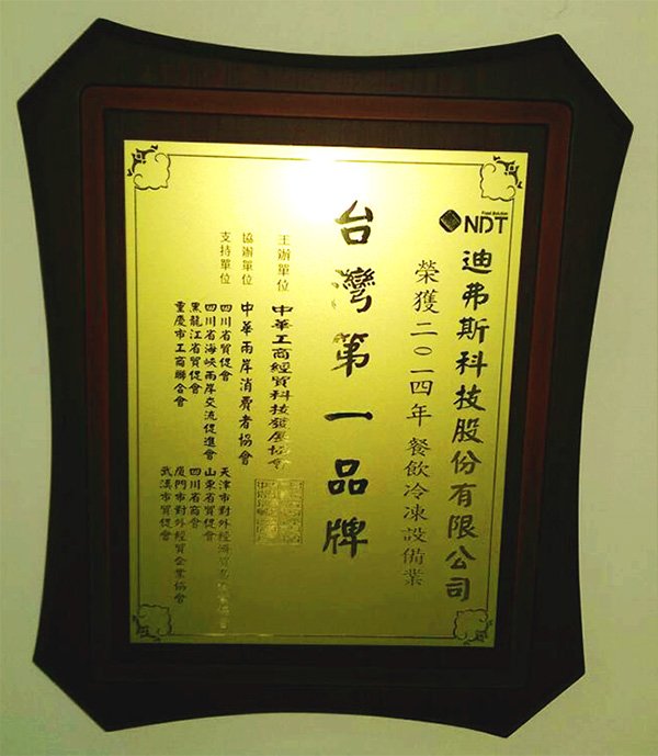 NDT 榮獲台灣2014年餐飲冷凍設備業 台灣第一品牌